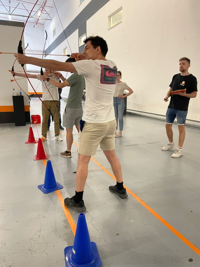 Deswegen waren wir bei Buddy Bash und hatten einen fantastischen Tag . Wir sind in den beiden Teams Kebab-Köpfe und Westsahara gegeneinander in verschiedenen Spielen angetreten. Das Ganze funktionierte nach dem Spielprinzip der TV-Show Schlag den Raab beziehungsweise Schlag den Star. Die Spiele waren bunt gemischt aus den Kategorien Sport, Taktik, Wissen und Geschick zusammengestellt, sodass jede:r von uns seine/ihre Stärken mit einbringen konnte.